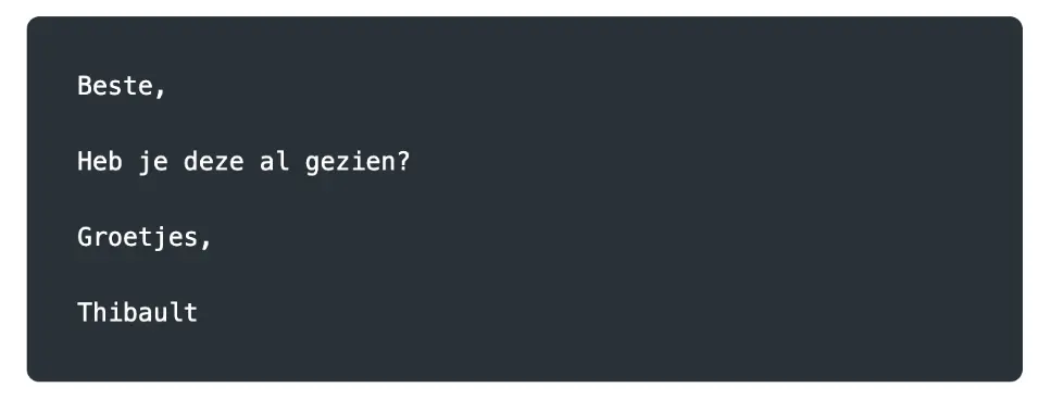 De e-mail zelf was eenvoudig en geschreven in het Nederlands: