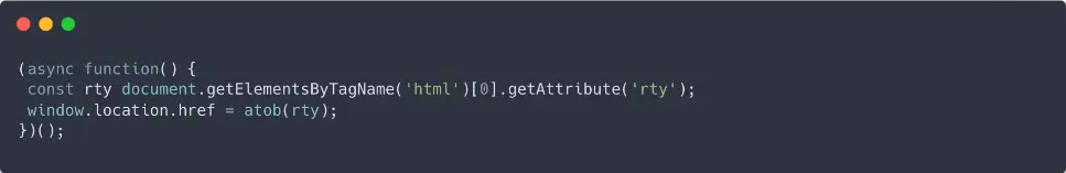 Dit script haalt de Base64-gecodeerde string uit het rty-attribuut van de <html>-tag en decodeert deze. Die gedecodeerde waarde, in ons geval een Rick Roll, wordt vervolgens ingesteld als de nieuwe window.location.href, waardoor de omleiding plaatsvindt.